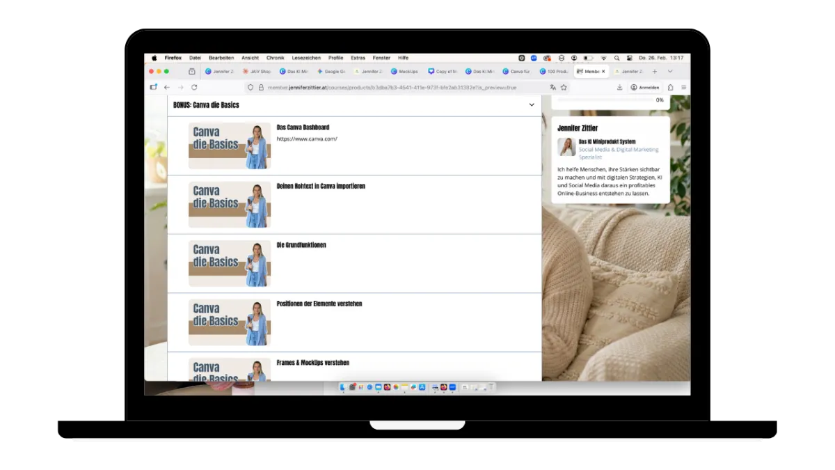 💻 Zugriff über den Mitgliederbereich: Von jedem Gerät aus (Laptop, Tablet, Handy). Lebenslanger Zugang lerne in deinem Tempo. Du kannst den Kurs durcharbeiten, wann immer & so oft du willst!