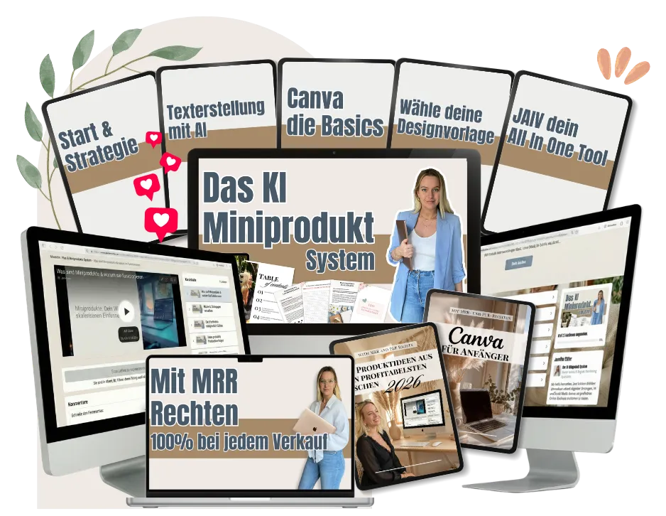 Stell dir vor: In 3 Tagen ist dein erstes professionelles PDF-Produkt fertig mit KI geschrieben, in Canva designed, auf deiner eigenen Verkaufsseite online. Genau das zeige ich dir Schritt für Schritt im KI Miniprodukt System.