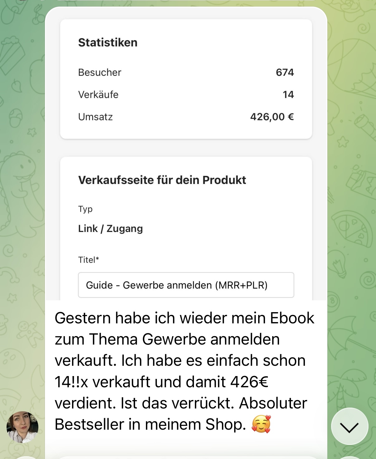 Mein erster Verkauf war eine 10$ PDF mit unter 100 Followern direkt nach Start meiner digitalen Reise.
