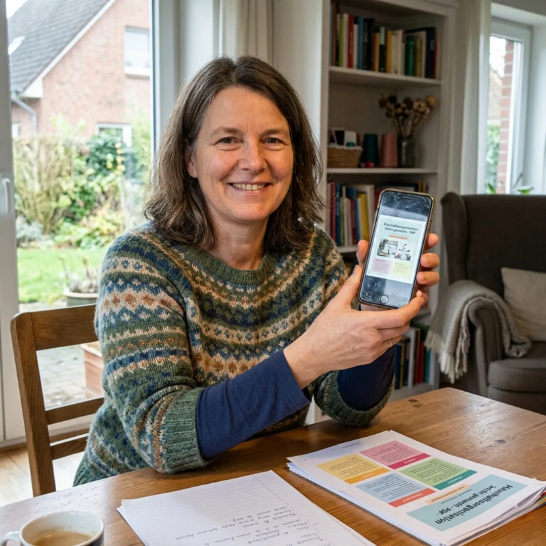 Ich bin 49 und dachte: Das ist nichts für mich, ich bin zu alt für sowas. KI? Canva? Funnels? Keine Ahnung. Doch Beate F. hatte mich inspiriert. Nach 2 Wochen hatte ich mein erstes Produkt fertig „Klarheit beginnt zu Hause". Inzwischen habe ich es 14 Mal verkauft. Ich kann es immer noch kaum glauben.